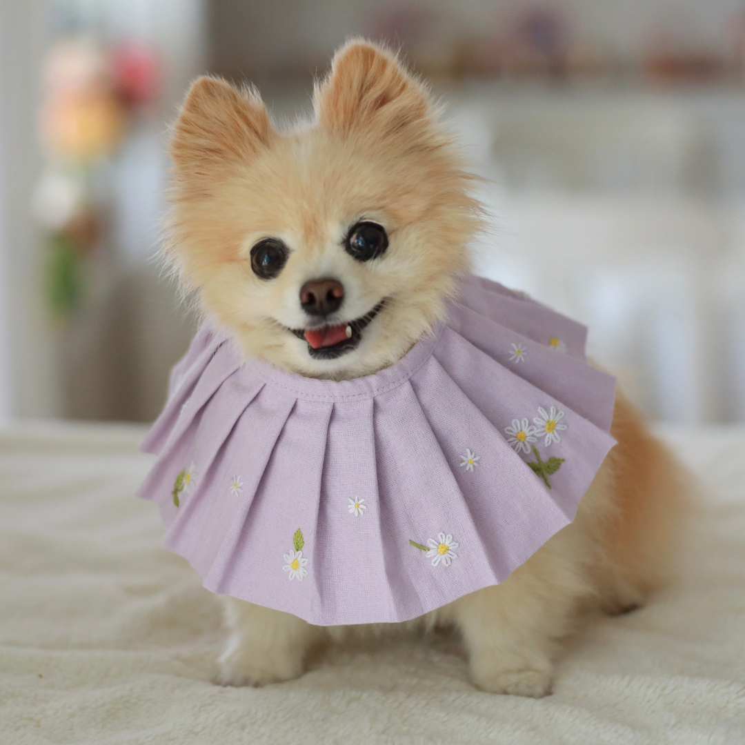 Crafted from soft, breathable linen and detailed with hand-embroidered daisies, it’s a functional accessory that’s as stylish as it is practical. Whether your dog is a sloppy drinker or a messy eater, this bib protects their fur while keeping them looking adorable.