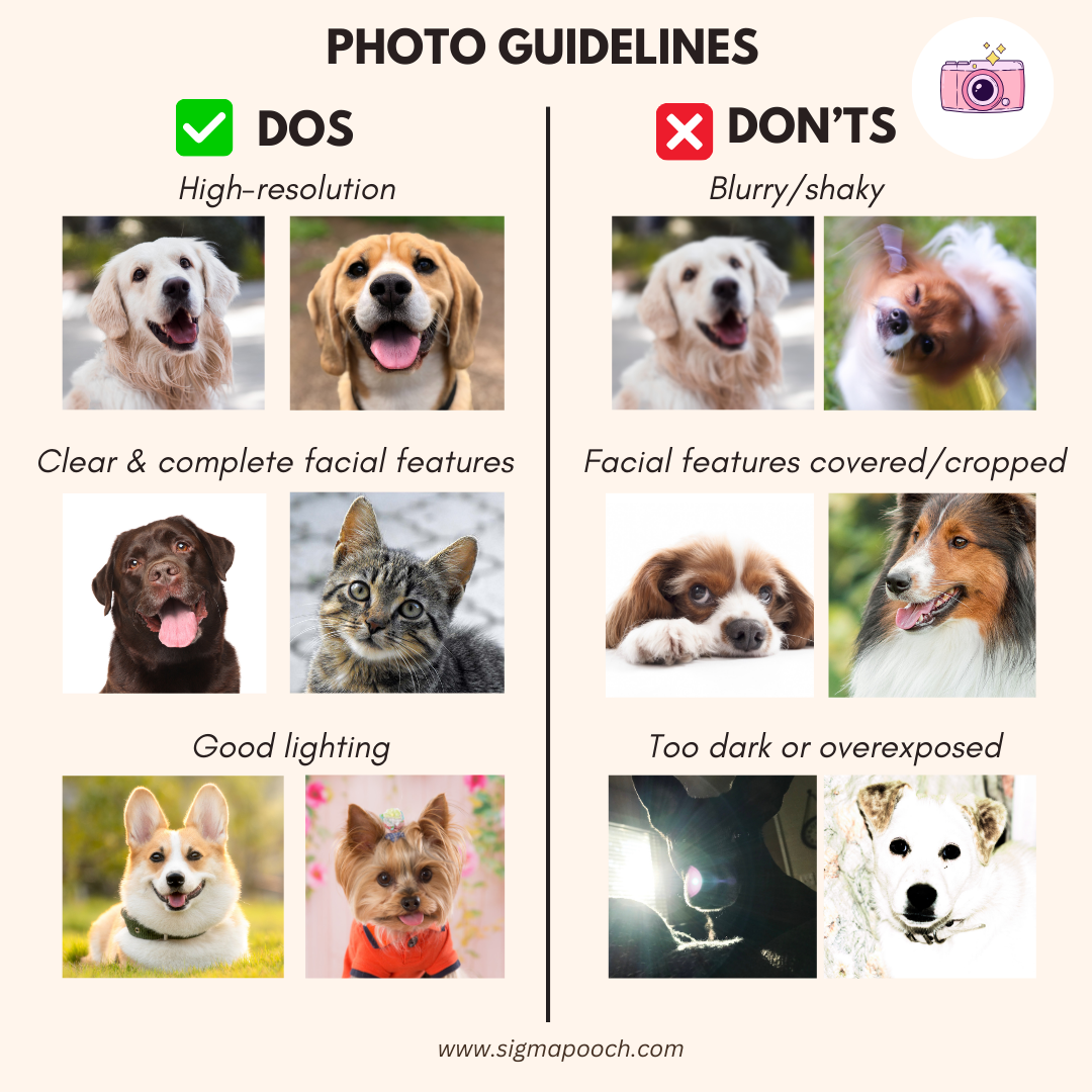 - Photo of your Pet(s) - please follow our photo guideline! If the photo doesn't meet our requirements, we might have to contact you to find another photo that works so be sure to check your email frequently including your spam folder.