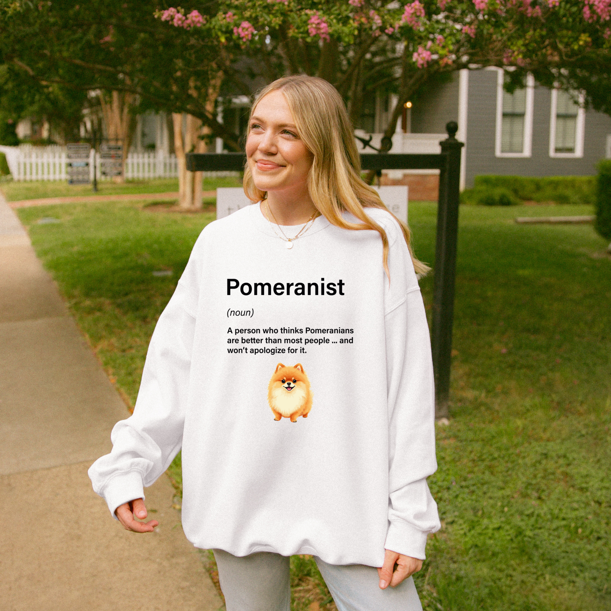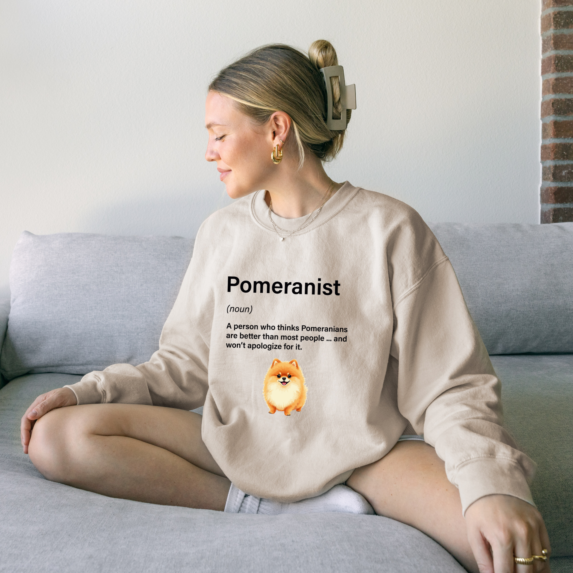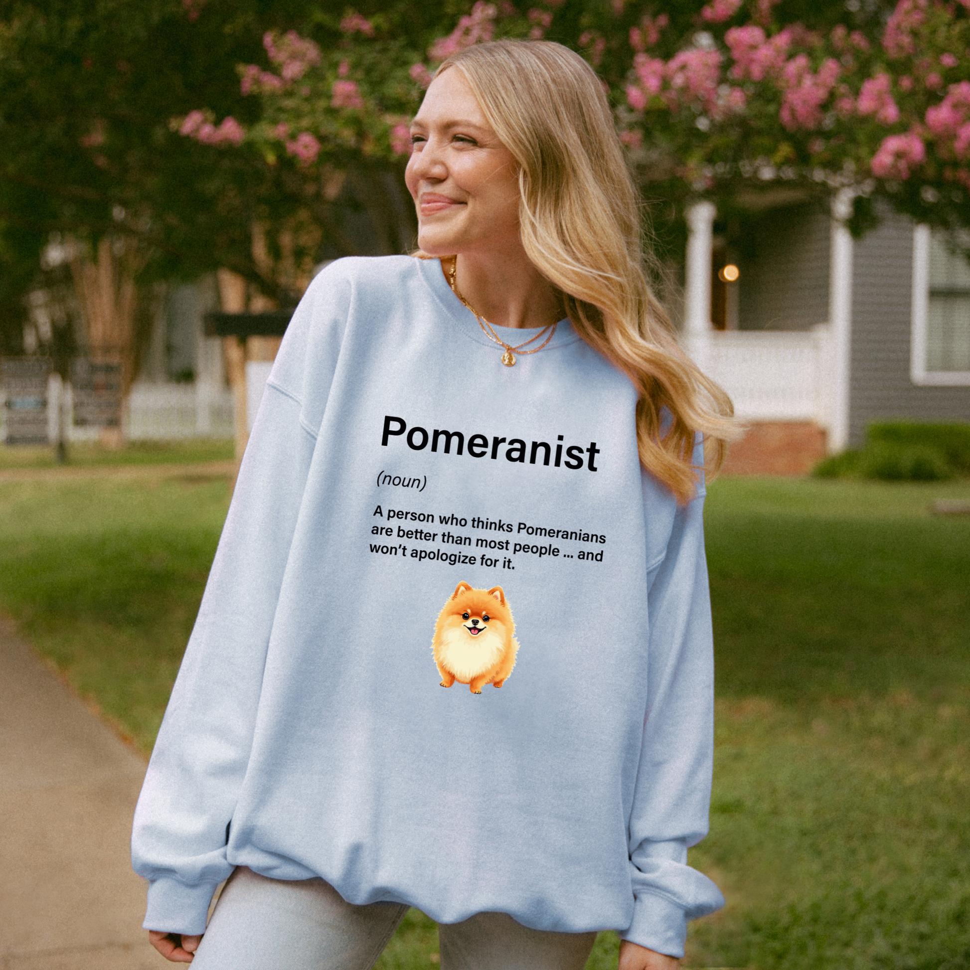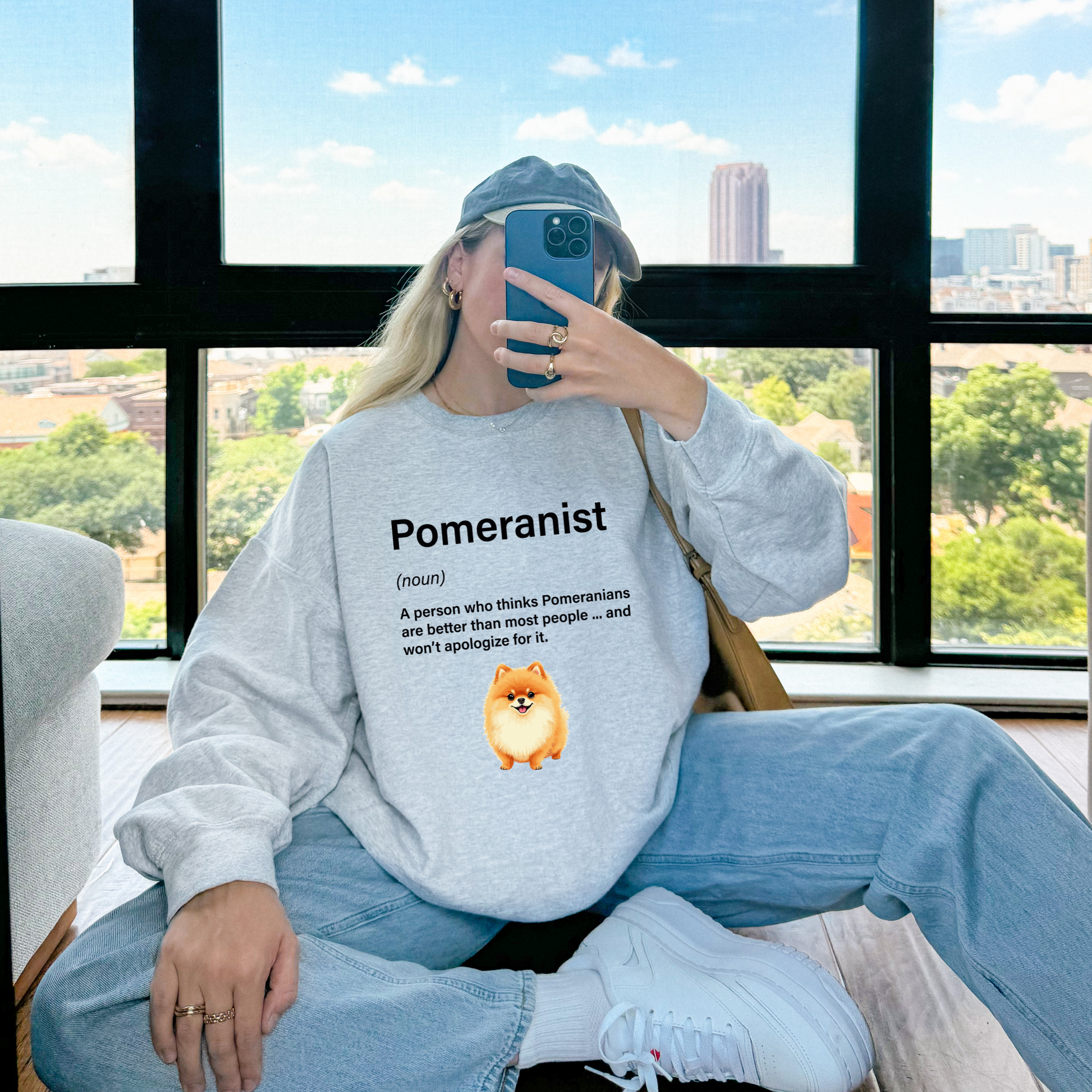 Stay warm and show off your love for Pomeranians with this cozy "Pomeranist" sweatshirt! Featuring the humorous Pomeranist definition this sweatshirt is perfect for those who truly believe in the unique charm of Pomeranians. Made from a soft, durable 50% cotton and 50% polyester medium-heavy blend, it’s ideal for chilly days, whether you're out with your pup or lounging at home.
