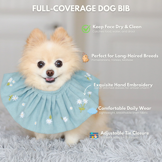 Each dog bib is meticulously handcrafted by our team of highly skilled artisans, featuring hand-embroidered flowers for a truly adorable, one-of-a-kind look!