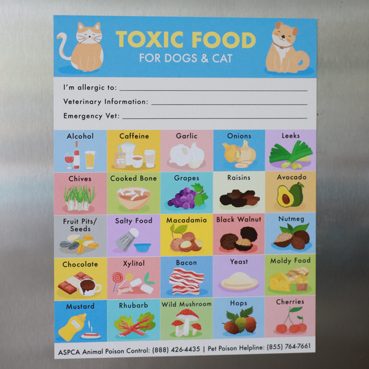 Toxic Foods Fridge Magnet for Pets Dogs & Cats